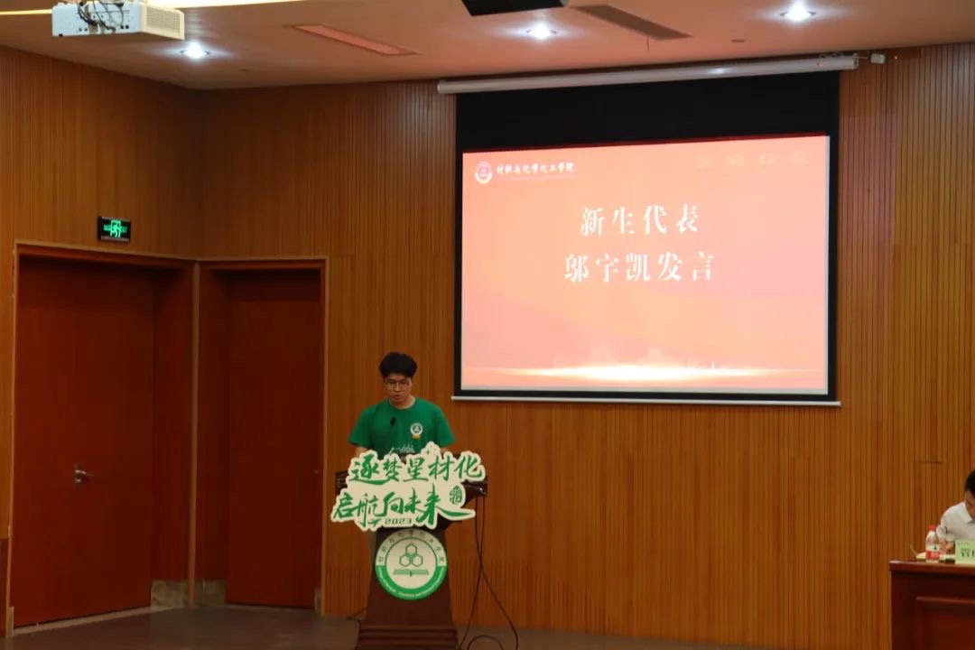 新生代表邬宇凯在发言中带领大家思考了从本科生到研究生身份转换后的区别,勉励自己和同学们提高自主性和创新性,学习师者德行,团结同门,在学术研究和经营生活中开创美好未来。