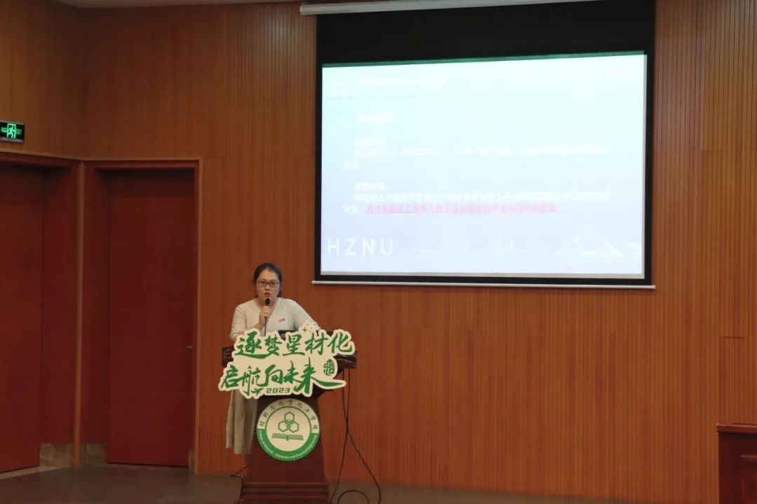 苏丽、孙丰娜和索南拉巴分别向研究生新生们介绍了学院研究生日常管理相关制度,详细讲述了学习计划、奖助体系、研究生日常管理中人身财产安全等注意事项,并表示将尽全力服务新生,助力新生们在材化的三年成长之路,最后学有所成。
