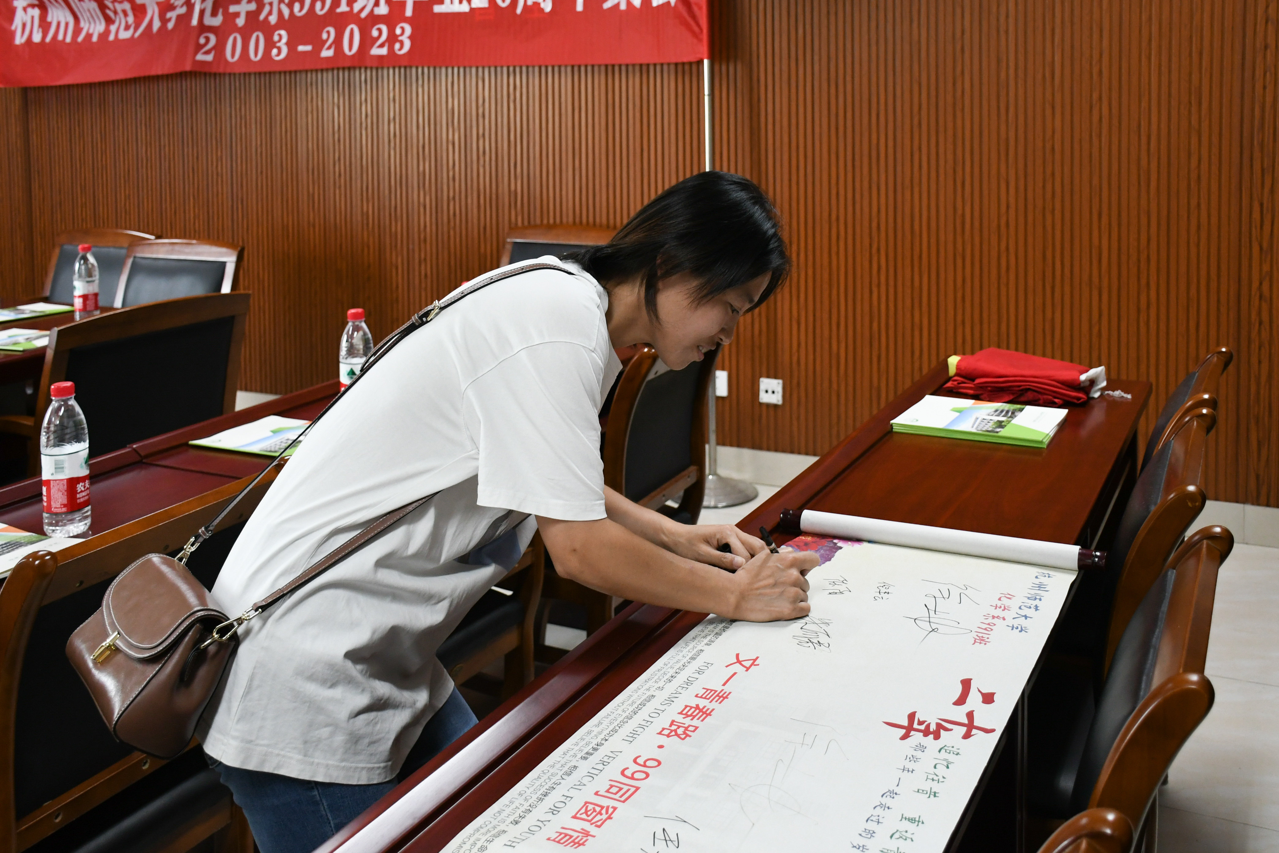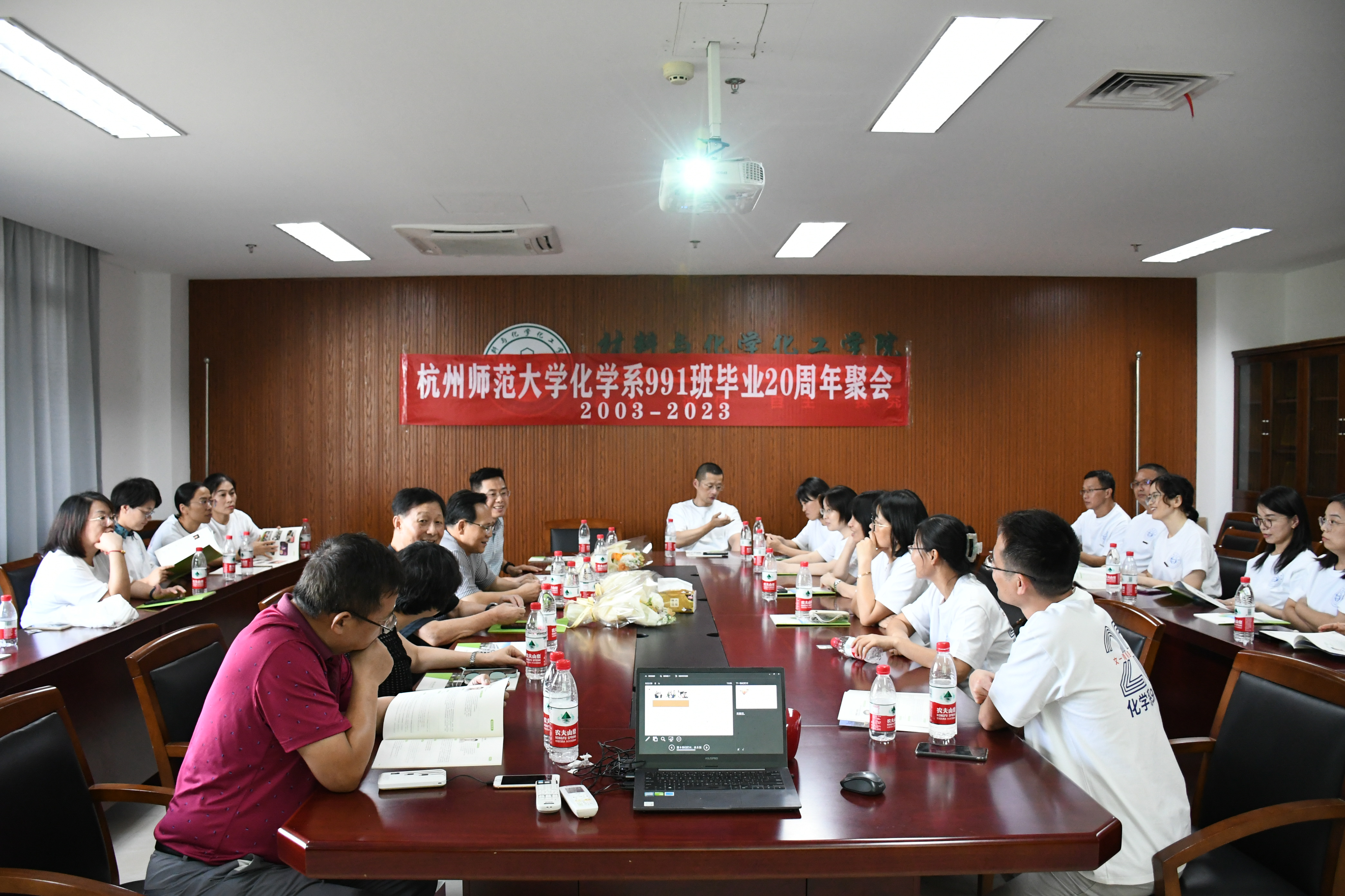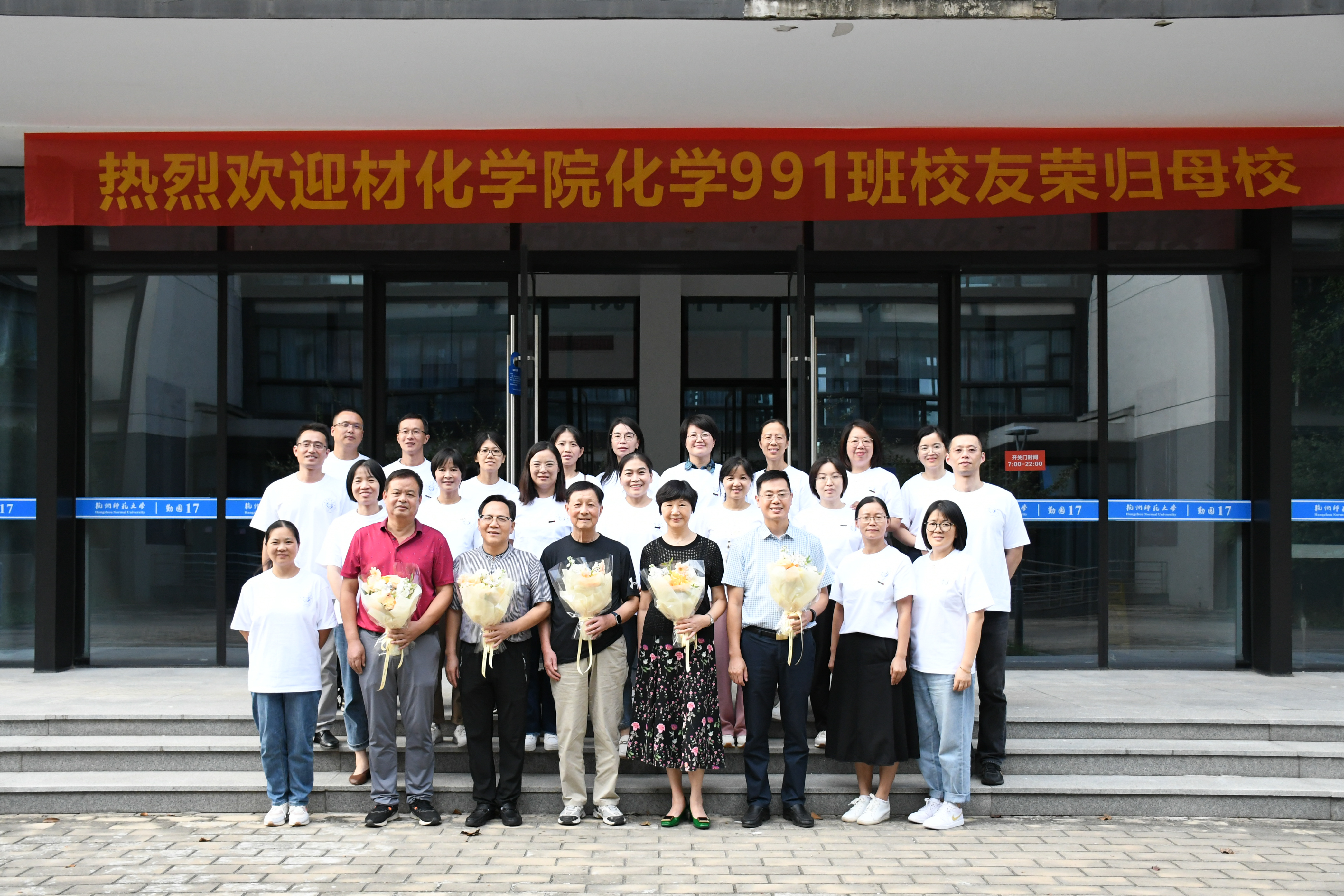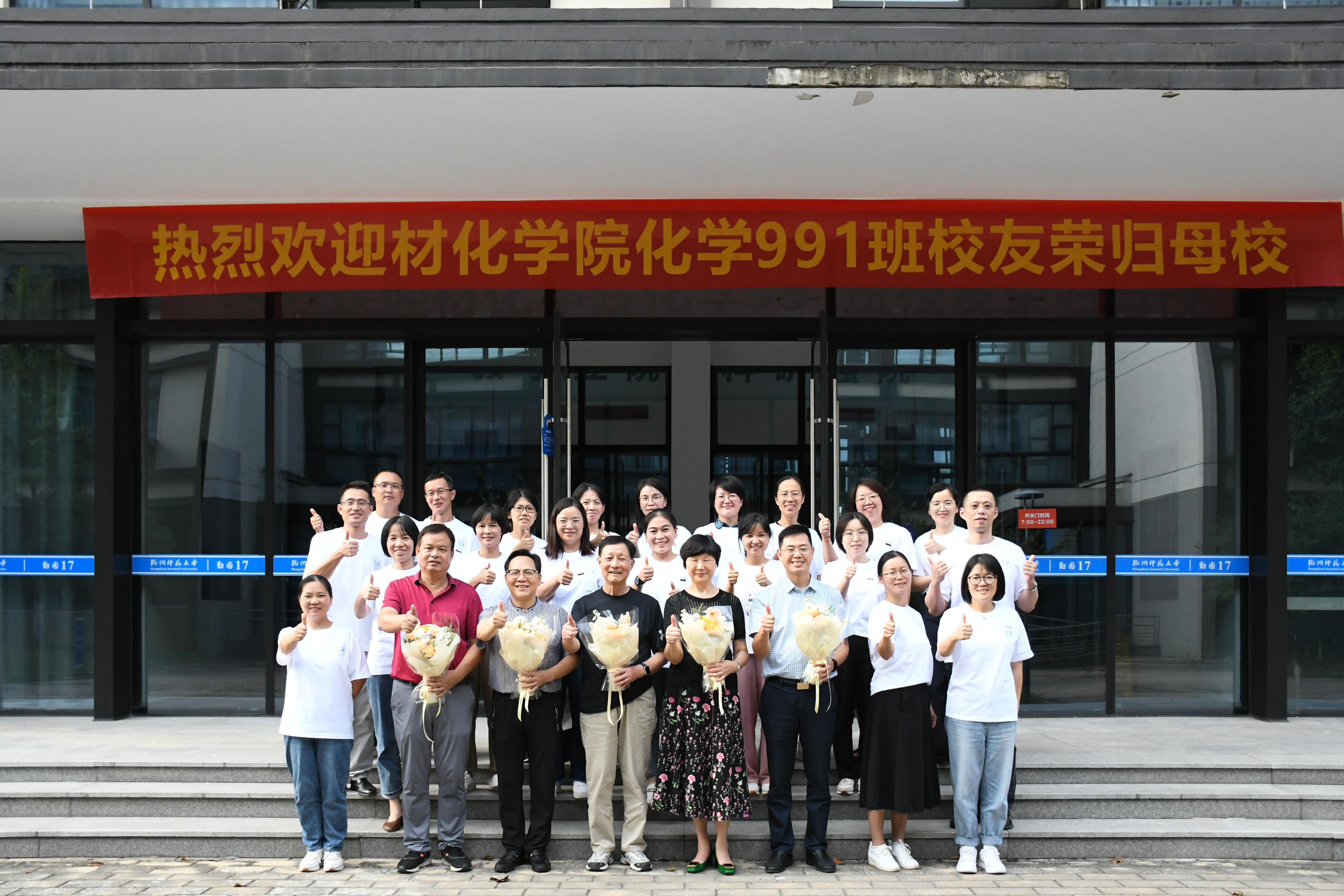金秋飒爽,丹桂飘香,喜逢国庆。10月1日下午,大师兄影视 化学991班二十余位校友欢聚仓前校区,举办“青春路 同窗情”毕业二十周年同学会。校友们重回母校、重聚材化,跨越时间长河,再叙师生情谊,同谋母校发展,重温师大岁月。时任化学系主任盛国定、化学991班班主任徐土根,时任年级辅导员、阿里巴巴商学院党委书记何军,任课教师代表邱瑾、刘金华,学工办主任兼学院校友工作联络员韩秉峻等热情接待了校友们。活动由化学991班校友、杭州市萧山区第二高级中学副校长任瀚旻主持。