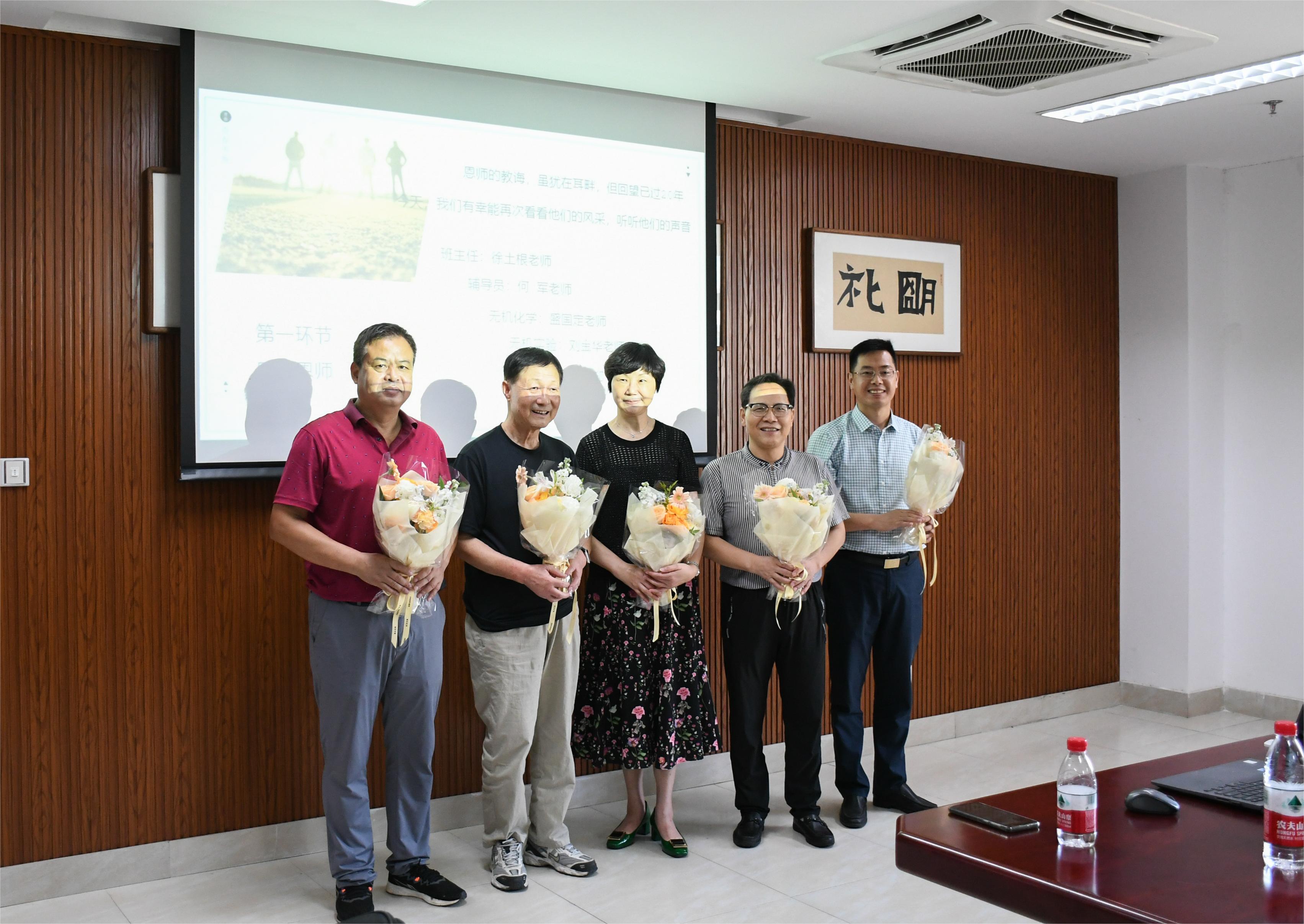 会前,校友代表向恩师们敬献了纪念品和鲜花,表达感恩之情。会上,化学991班的成员们依次发言,分享了自己毕业后的工作经历和生活感悟,表达了对老师的感谢。