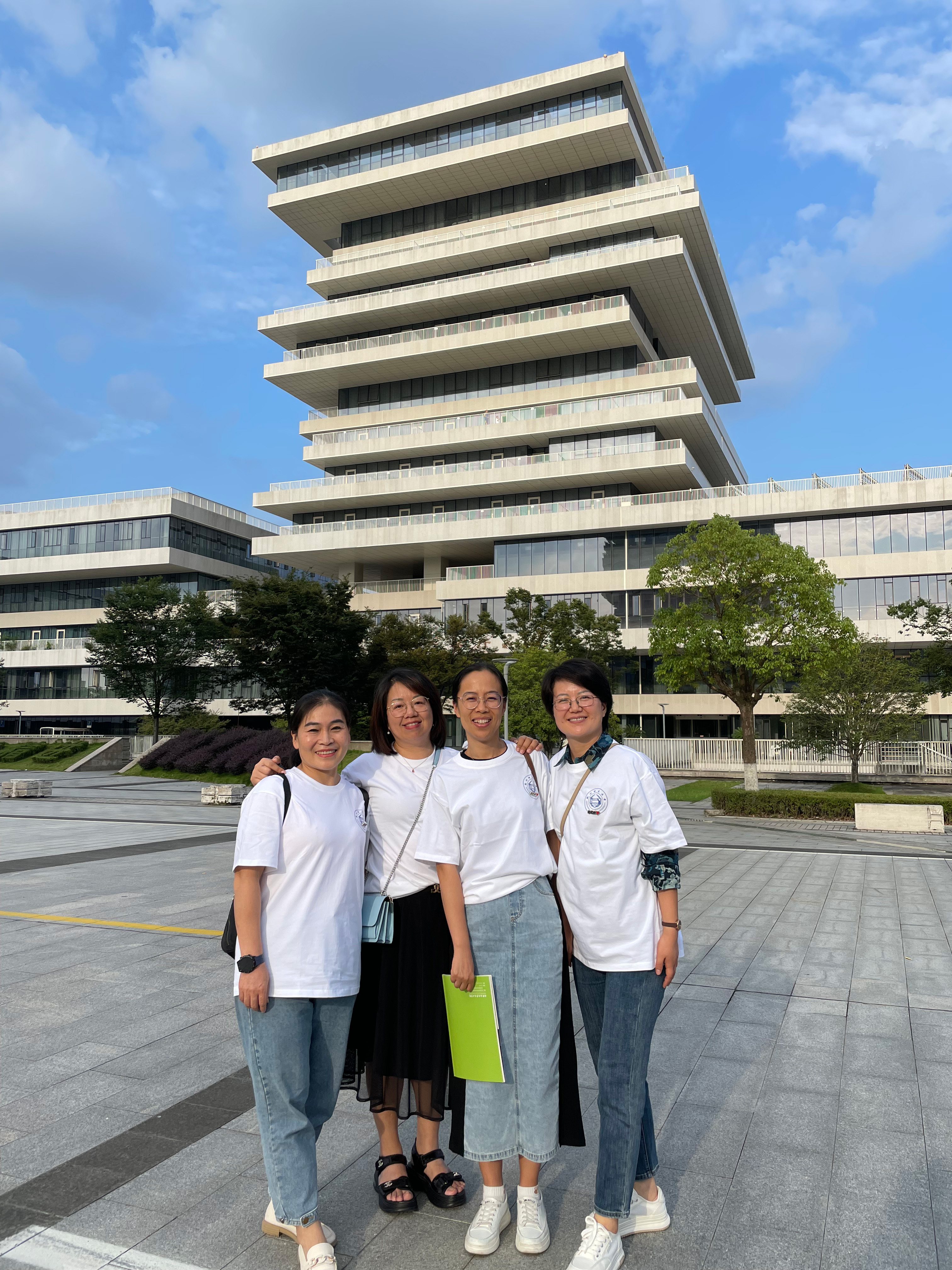 座谈会后,校友们前往图书馆、教学楼、实验室等地“打卡”,并在大师兄影视 大楼前合影留念。整洁宽敞的教室、先进的实验设备、整齐的实验器材,让大家赞不绝口。校友们感谢多年来母校对大家的培养,表示母校永远是校友们坚实的后盾,今后会时刻关注母校的发展,并祝愿母校越来越好。