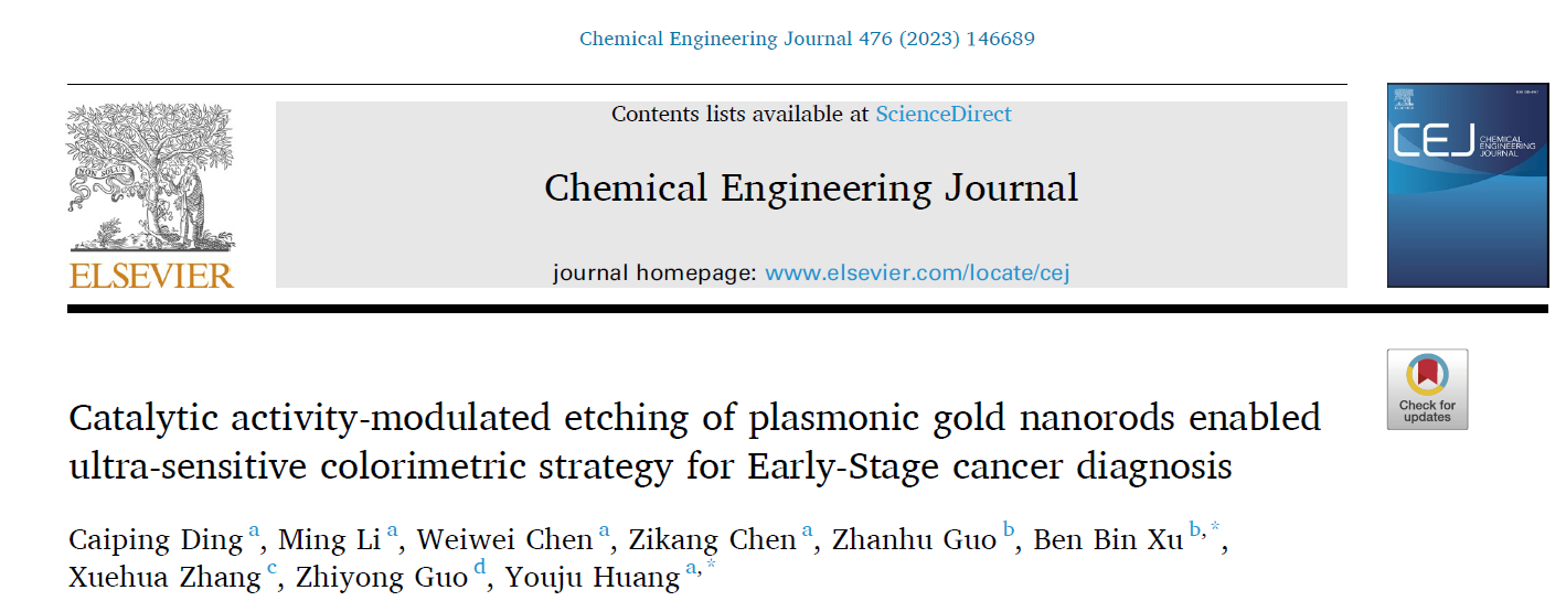 近日,大师兄影视 黄又举教授团队在AuNPs催化活性调控AuNRs刻蚀的超灵敏比色可视化传感器用于癌症早期诊断方面取得新进展。相关研究结果以“Catalytic activity-modulated etching of plasmonic gold nanorods enabled ultra-sensitive colorimetric strategy for Early-Stage cancer diagnosis”为题发表在Chemical Engineering Journal (Q1, IF=15.1)。DOI: 10.1016/j.cej.2023.146689。