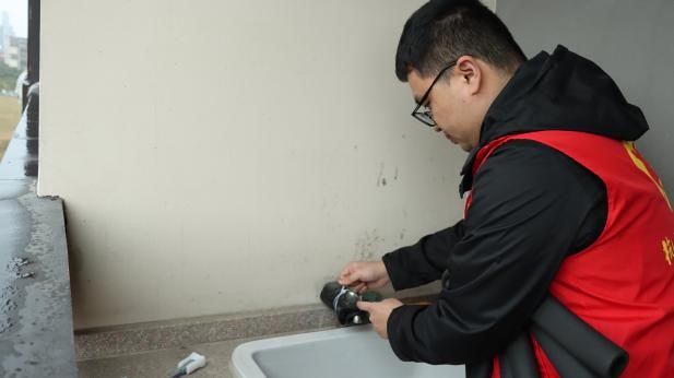 在“寓”你共志愿环节,由后勤老师带领支部学生于精思苑3号楼开展冬季包水管活动。支部学生与后勤老师携手合作,对寝室水管进行保暖包裹。这不仅保障了学生冬季用水不受影响,而且让学生切实感受到了公寓生活的辛福感。