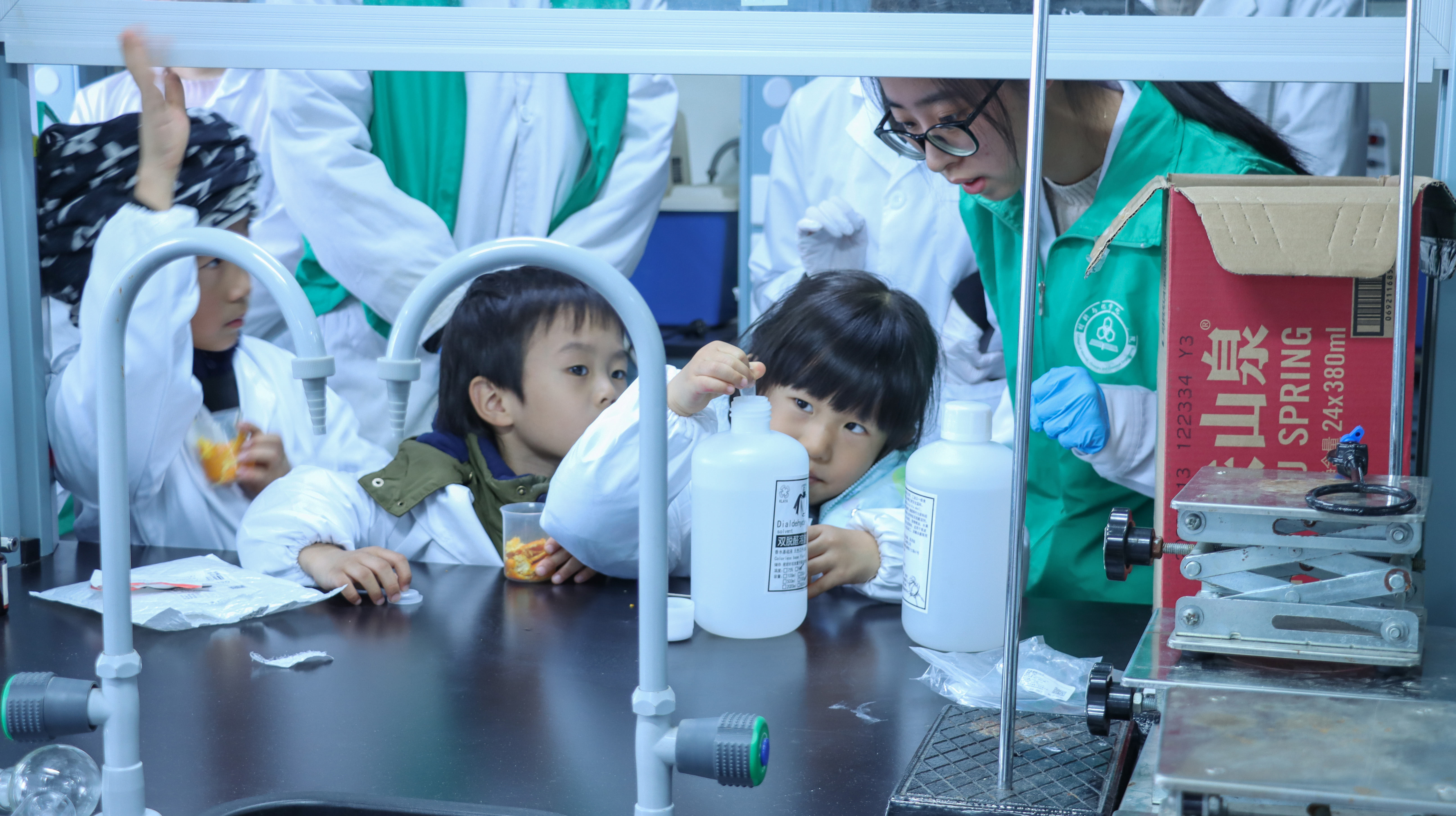 接着,在志愿者陪同下,黄锴奇带领小朋友们前往勤园18-302实验室进行下一步的活动。黄锴奇现场为小朋友们展示了如何制备橘子香水,并且与志愿者完成了实验的整个流程。小朋友们现场尝试,在志愿者的帮助下,制作出了属于自己的橘子香水。