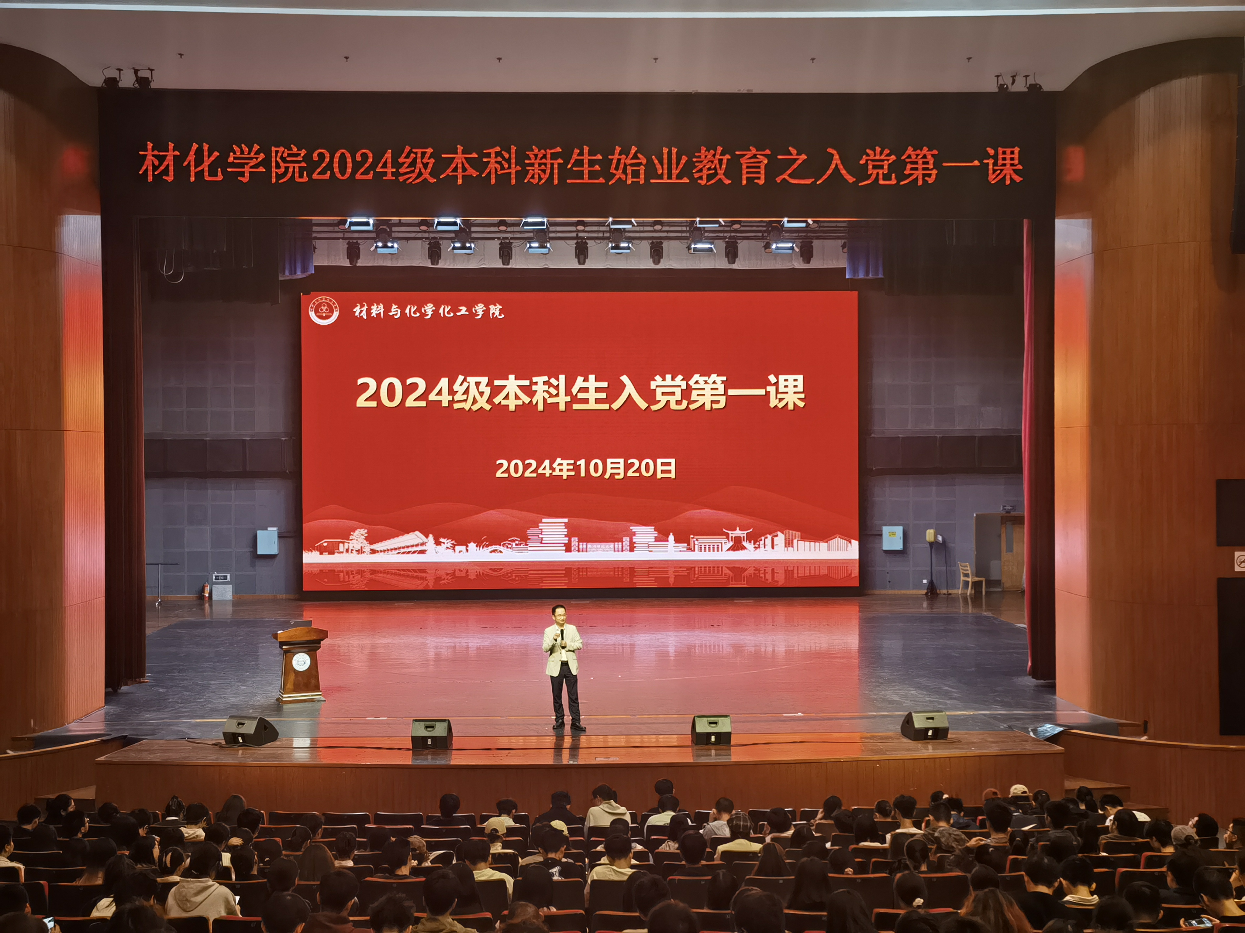 为进一步激发青年大学生政治热情,推动学生入党“早教育、早引导、早启蒙、早发现、早培养”,加深本科新生对党的认识、坚定共产主义信仰,提高思想政治觉悟,大师兄影视 2024级本科新生始业教育之“入党第一课”于10月20日17:00在下沙校区艺术中心1200座开讲。学院党委书记江齐里担任主讲,辅导员赖雷雨以及全体2024级本科生参加活动。