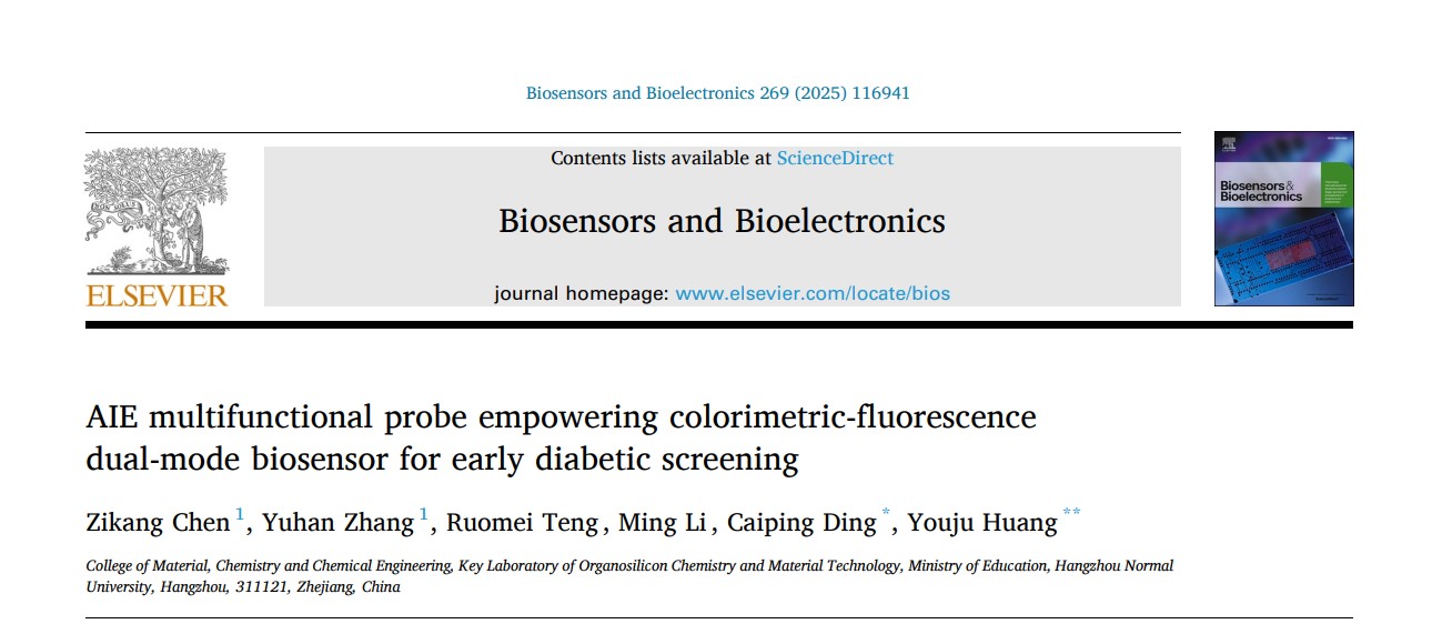 黄又举教授团队在用于早期糖尿病筛查的比色-荧光双模生物传感器方面取得新进展。相关研究结果以“AIE multifunctional probe empowering colorimetric-fluorescence dual-mode biosensor for early diabetic screening”为题发表在Biosensors and Bioelectronics (Q1, IF=10.7)。DOI:10.1016/j.bios.2024.116941。