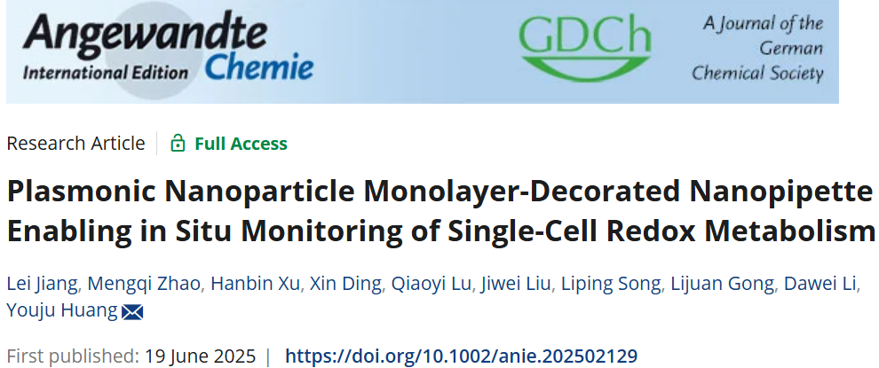 近日,大师兄影视 黄又举教授在利用等离激元纳米颗粒单层膜修饰的纳米毛细管进行单细胞氧化还原代谢原位监测取得新进展。相关研究成果以“Plasmonic Nanoparticle Monolayer-Decorated Nanopipette Enabling in Situ Monitoring of Single-Cell Redox Metabolism”为题发表在Angewandte Chemie International Edition (Q1, IF=16.7), DOI: 10.1002/anie.202502129。