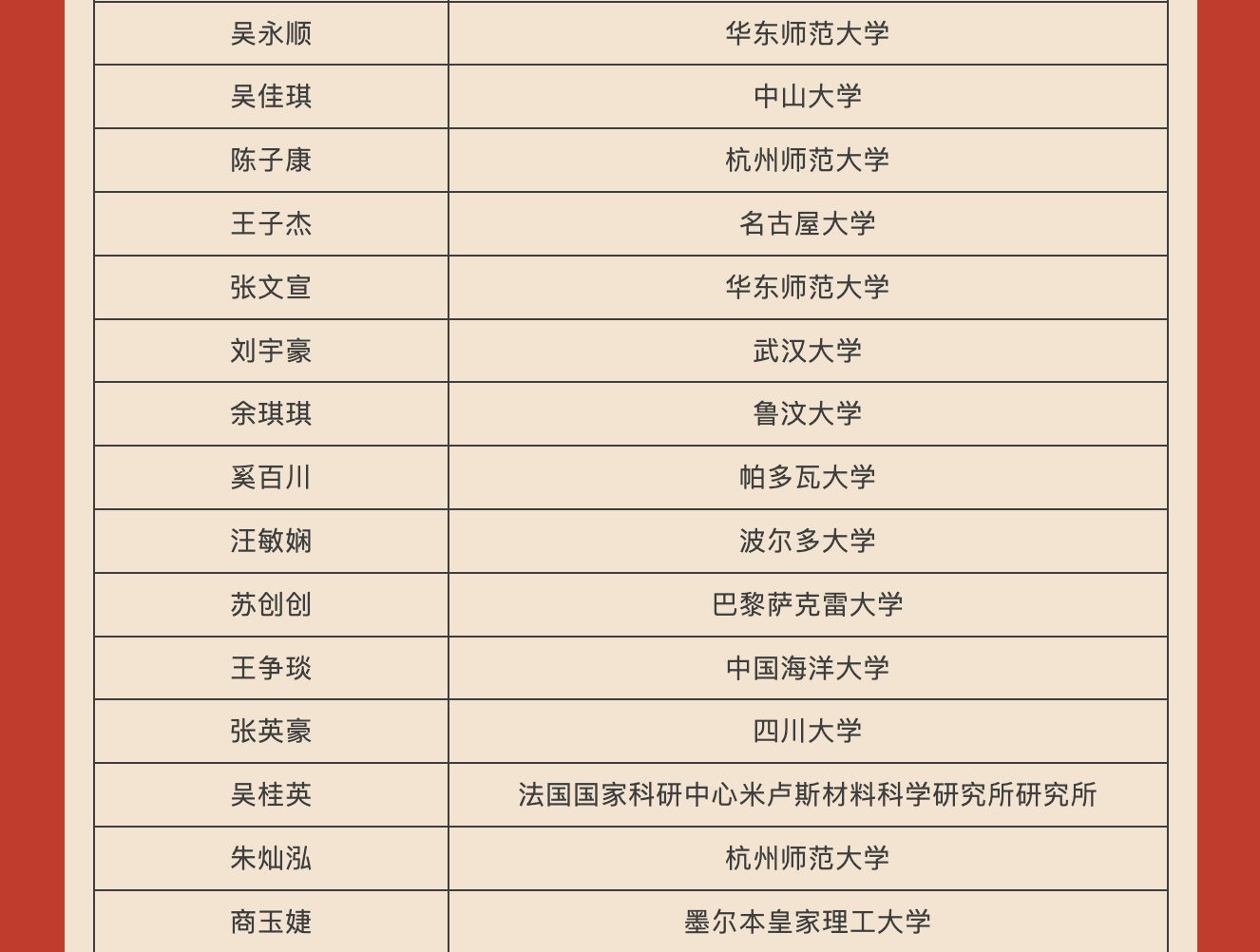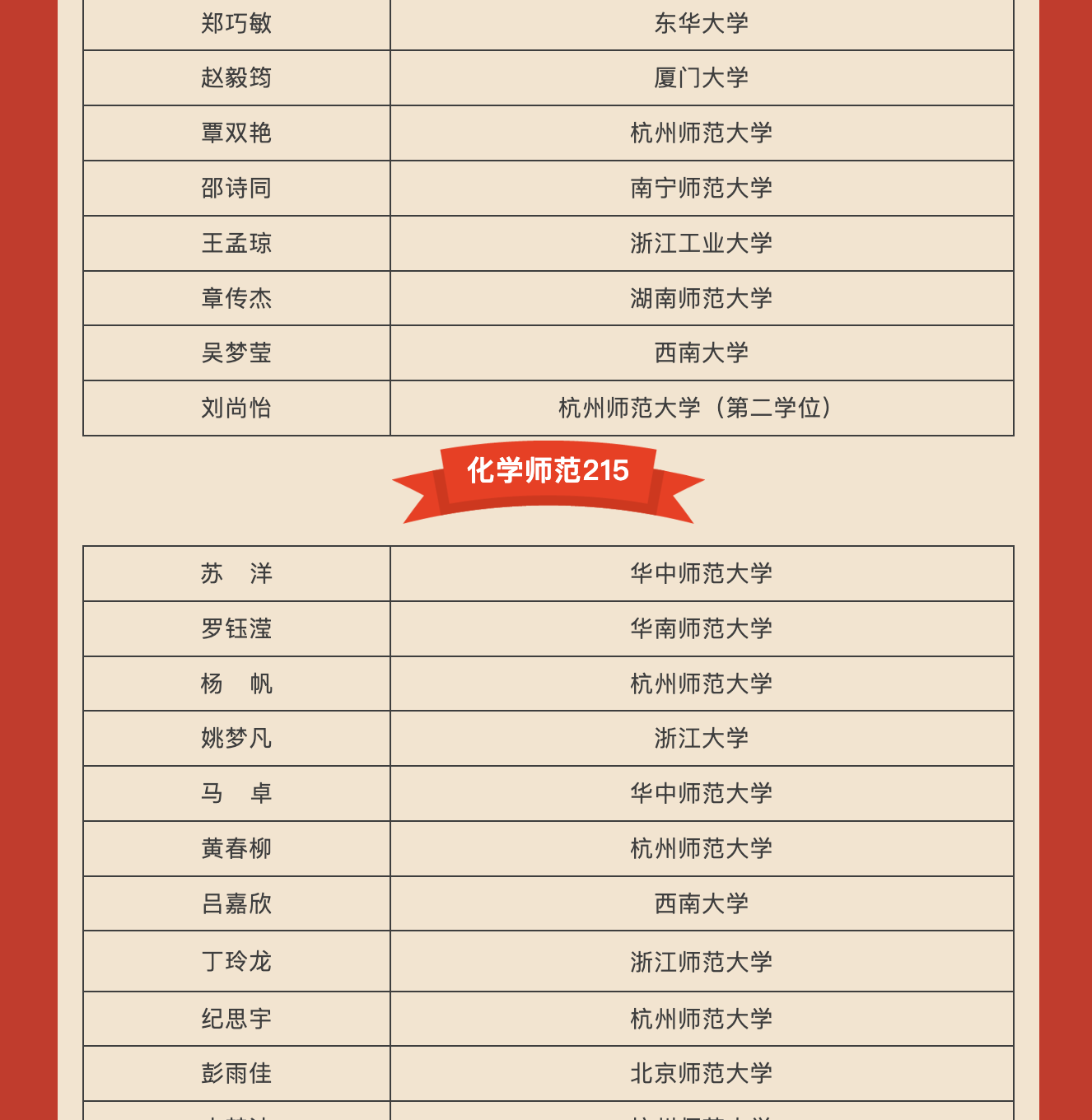 苦尽甘来,山月星河都做贺礼。今年,我院共有116本科毕业生实现升学攻读硕士研究生,其中68人被浙江大学、中国科学技术大学、华东师范大学、东南大学、厦门大学、南京师范大学、华东理工大学、福州大学等“双一流”高校录取。不仅如此,学院有30名硕士研究生攻读博士学位,获得南开大学、南京大学、华中师范大学、华东师范大学等高校拟录取资格。此外,学院有10名学生获得公派留学资格。