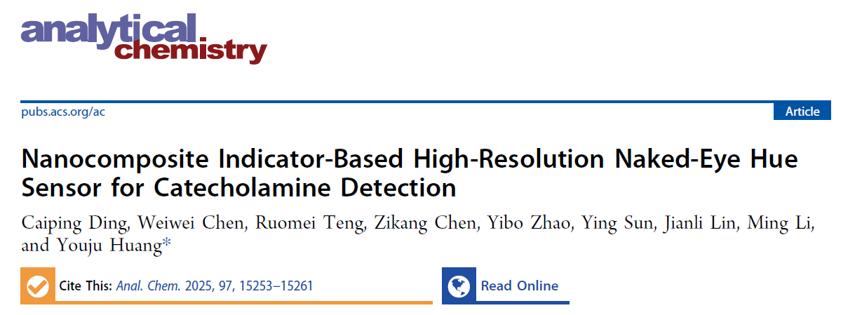 近日,大师兄影视 黄又举教授在利用纳米混合指示剂赋能高分辨率色相可视化传感技术取得新进展。相关研究成果以“Nanocomposite Indicator-based High-resolution Naked-Eye Hue Sensor for Catecholamine Detection”为题在Analytical Chemistry(Q1)上发表。