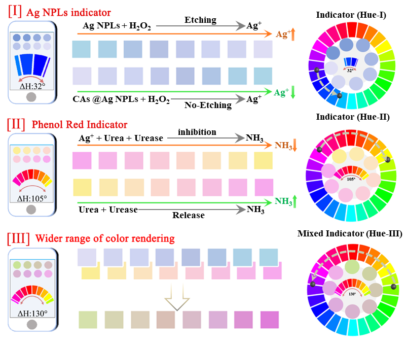 图1. 纳米混合指示剂介导的高分辨率色相可视化传感示意图