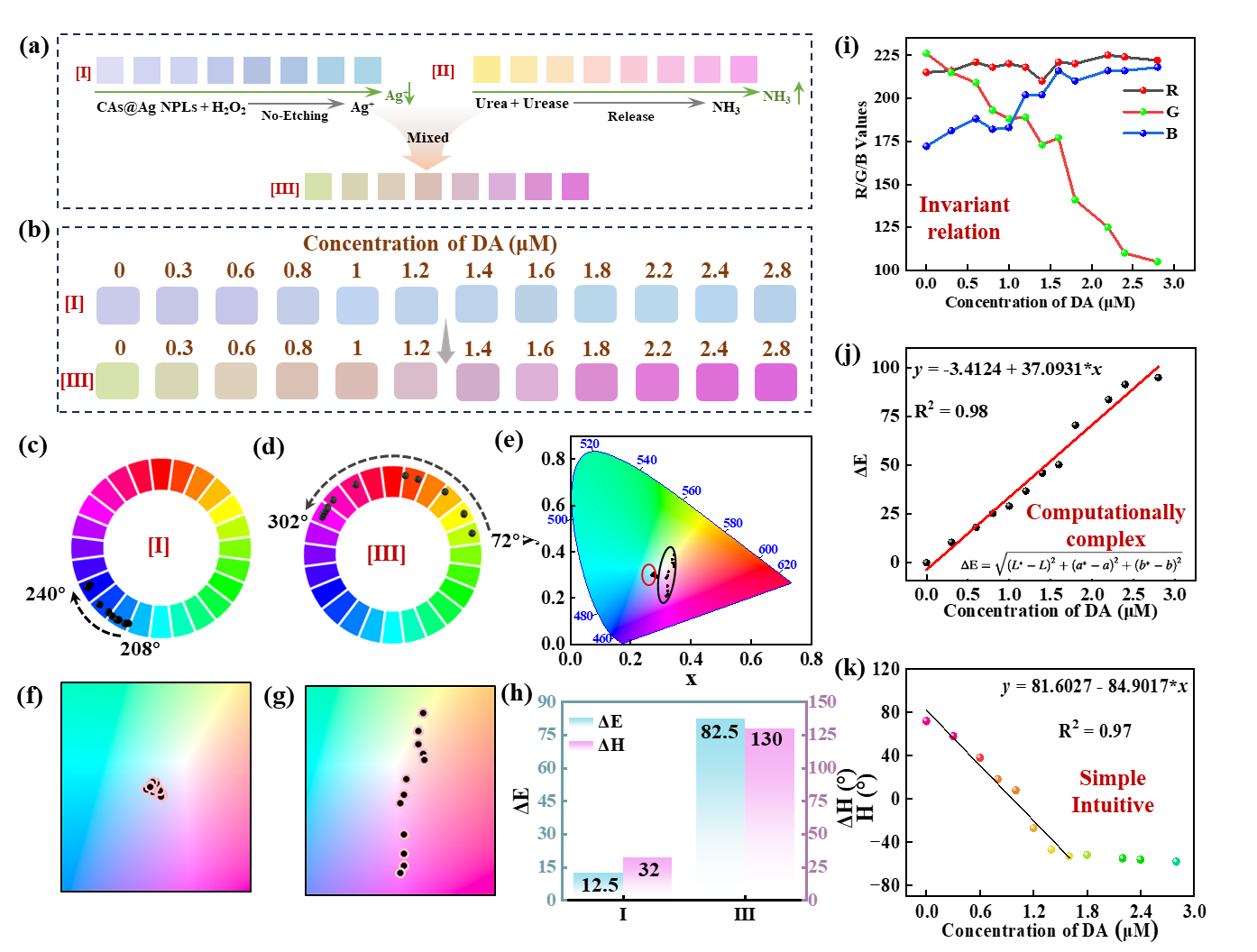 图2. 高分辨率色相传感检测多巴胺