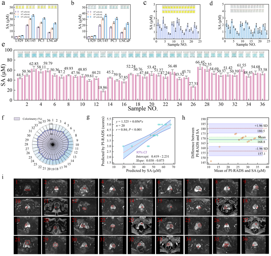 图4. 纳米酶探针检测体系在前列腺癌患者体外诊断中的应用。