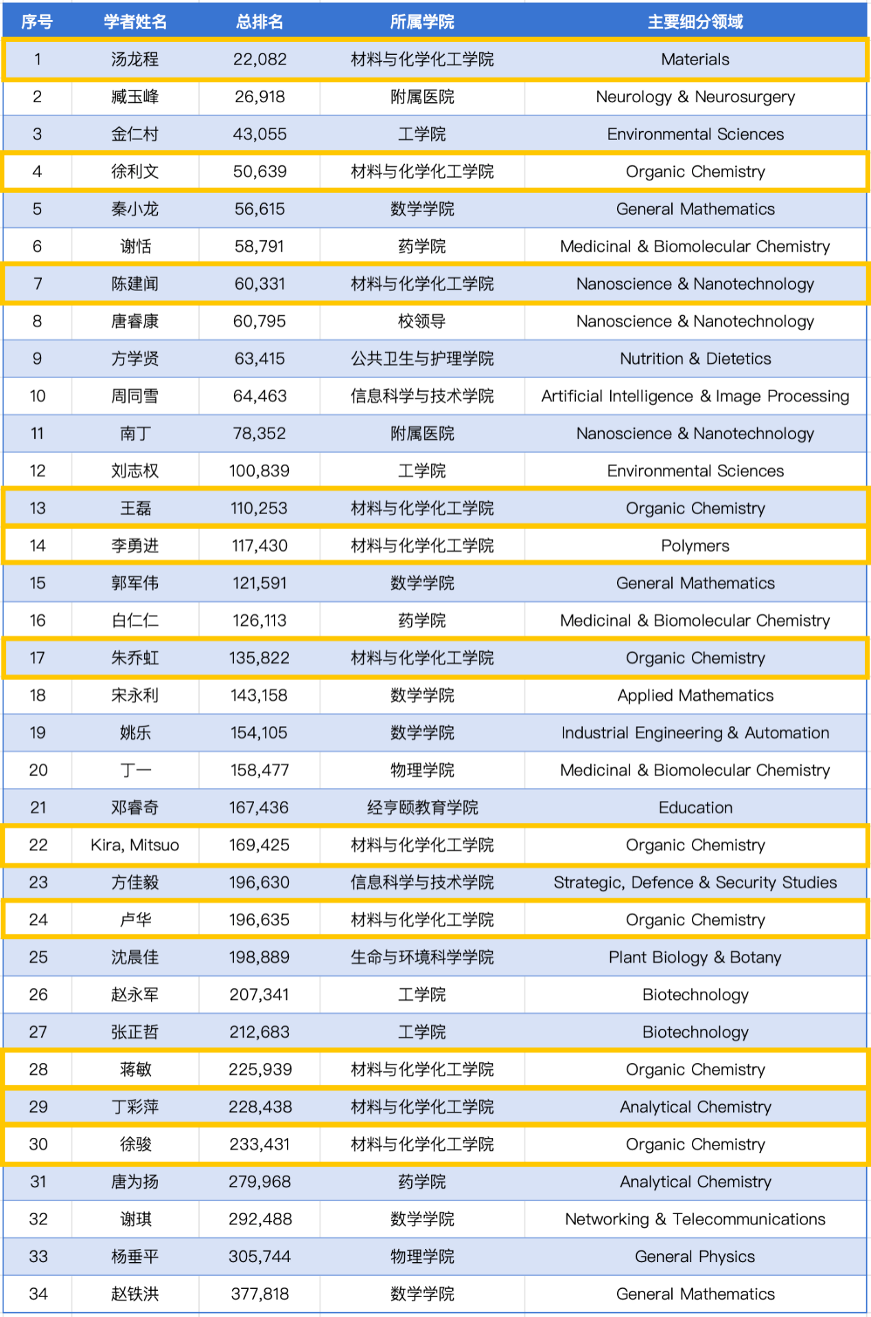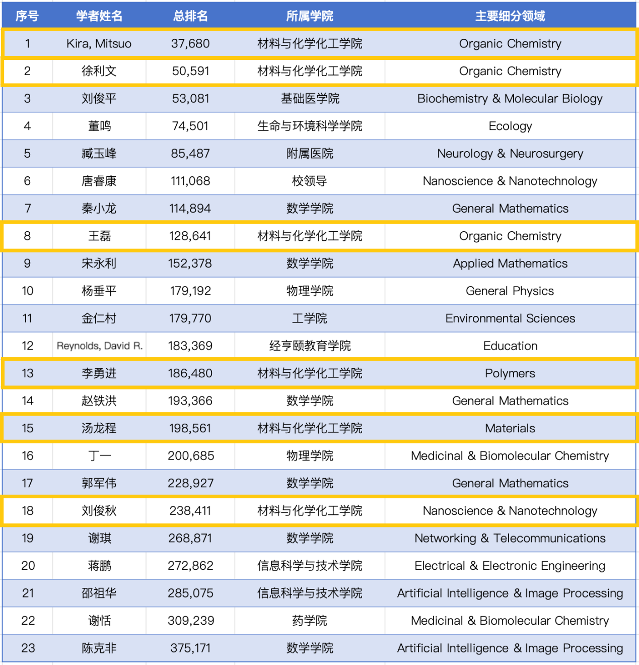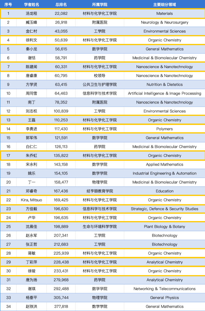 11位学者入选全球前2%“年度科学影响力榜单”