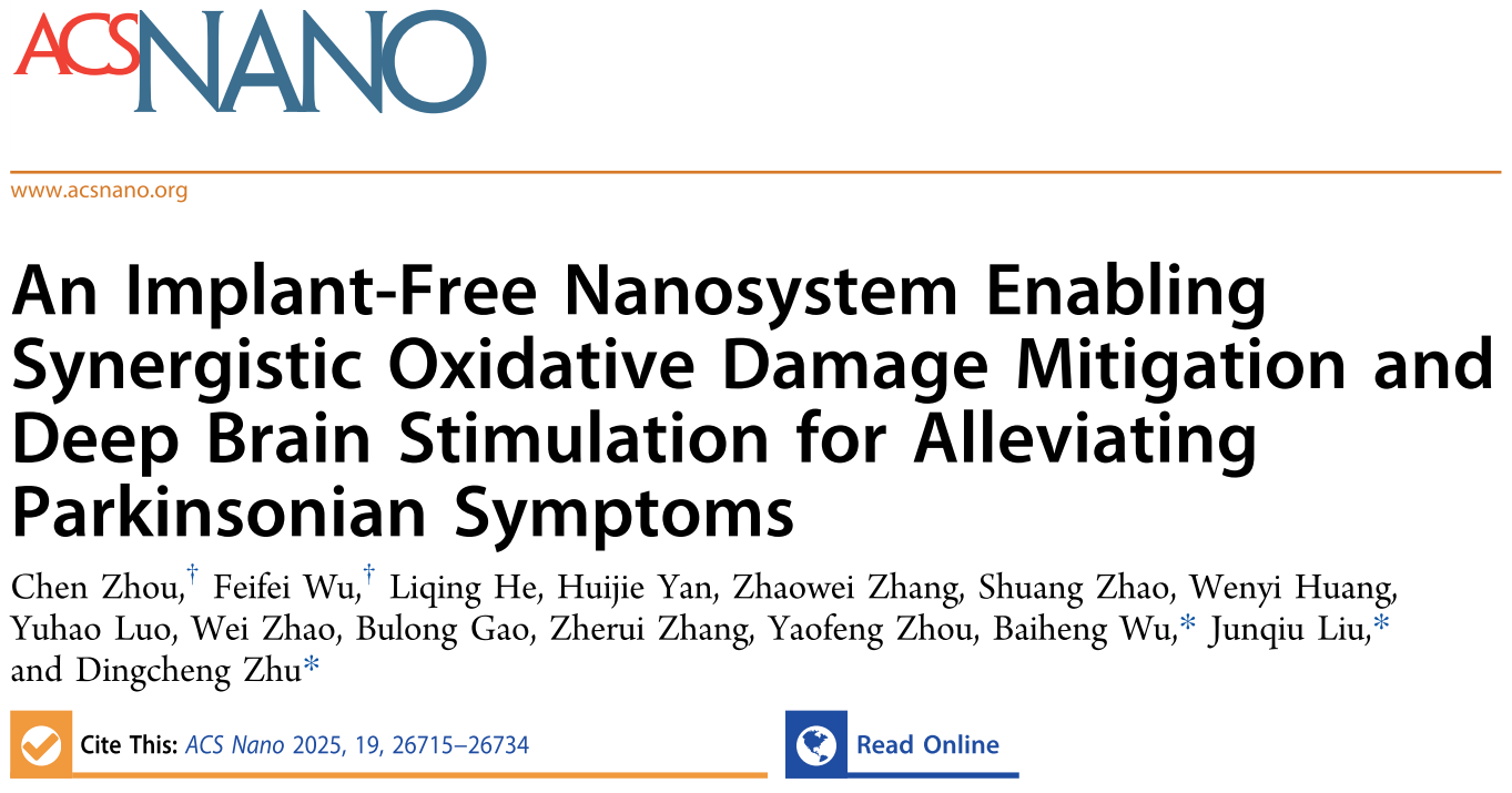 近日,杭师大大师兄影视 刘俊秋教授团队在神经Ca2+信号激活的交叉研究领域取得突破性进展,相关研究成果以题为“An Implant-Free Nanosystem Enabling Synergistic Oxidative Damage Mitigation and Deep Brain Stimulation for Alleviating Parkinsonian Symptoms”发表于ACS Nano(IF = 15.4)。