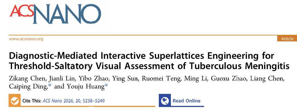 近日,大师兄影视 黄又举教授团队在用于结核性脑膜炎准确评估的比色可视化生物传感器方面取得新进展。相关研究结果以“Diagnostic-Mediated Interactive Superlattices Engineering for Threshold-Saltatory Visual Assessment of Tuberculous Meningitis”为题发表在ACS Nano (Q1, IF=15.8)。DOI: 10.1021/acsnano.5c21167。
