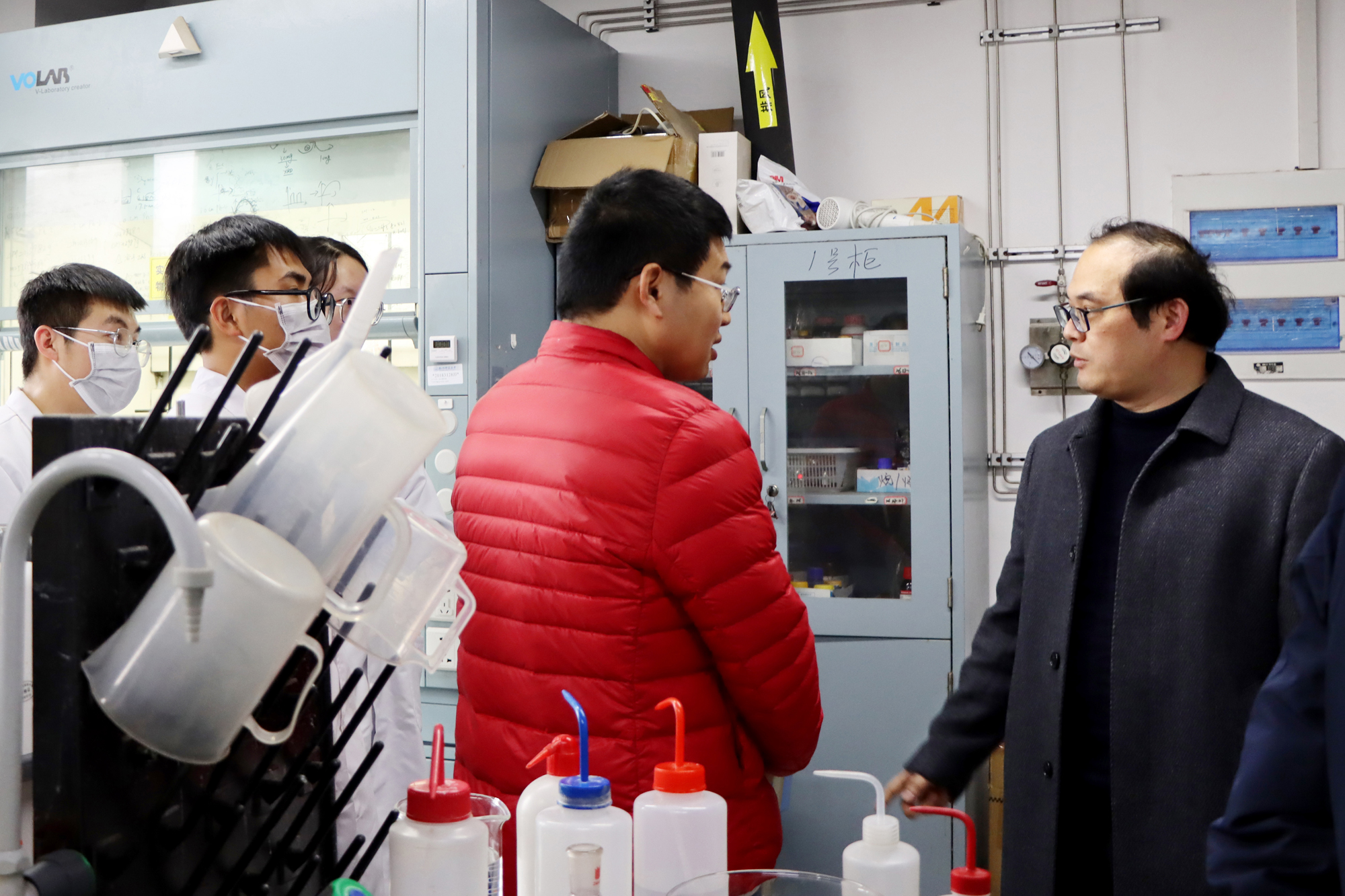 检查过程中,学院领导逐一走访每一间实验室,聚焦关键环节从严督导。重点围绕实验溶剂规范储存、实验废弃物分类处置、高温高压设备安全警示及应急预案落实等情况进行细致排查,现场查看安全操作规程执行、仪器设备运行及用电安全等状况。每到一处,都与在场师生深入交流,详细了解实验操作流程,反复强调严守安全规范、落实安全责任的重要性。对检查中发现的问题,现场提出具体整改建议,明确整改时限与要求,切实做到隐患“发现一处、整改一处”,坚决筑牢校园安全防线。