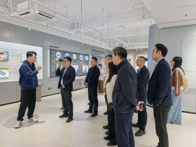 活动一行首先来到灵境“未来・视界”空间计算中心,实地了解空间计算、人工智能交互等前沿技术在数字经济、智慧产业中的应用场景,沉浸式体验AI眼镜等创新产品,直观把握产业发展趋势,为学院优化人才培养方案、提升专业适配度提供实践参考。