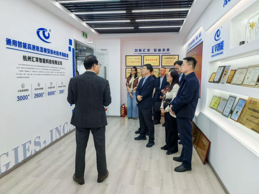 在国家级专精特新重点“小巨人”企业杭州汇萃智能科技有限公司,公司董事长兼总经理周才健陪同参观企业科创成果展厅,重点了解机器视觉、智能制造等领域核心技术研发与产业化布局。座谈中,学院围绕相关专业人才培养、实习实践、岗位供给、项目共研等内容与企业深入交流,积极推动产学研协同创新,精准对接企业用人需求,拓宽大师兄影视 毕业生本地就业渠道。